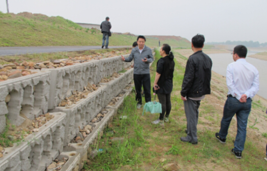 2014年5月11日,湖北省仙桃市水利水電勘測(cè)設(shè)計(jì)院院長(zhǎng)鄭曦、設(shè)計(jì)總工舒德春等多位領(lǐng)導(dǎo)蒞臨我司進(jìn)行考察調(diào)研,正茂新材銷售公司總經(jīng)理饒敏親自接待,并帶領(lǐng)他們參觀了我司黃岡生產(chǎn)基地及參建項(xiàng)目--東坡外灘河道改造和幸福水庫(kù)工程,此次考察的對(duì)象主要是生態(tài)護(hù)坡及生態(tài)擋土墻系列產(chǎn)品,并對(duì)其安裝運(yùn)用提供技術(shù)性的指導(dǎo)工作。