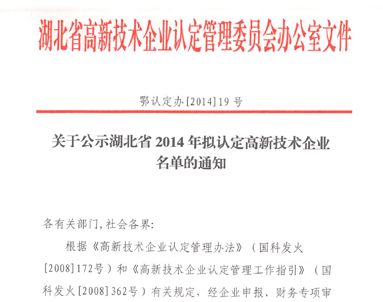 湖北正茂獲科技廳高科技企業(yè)認定