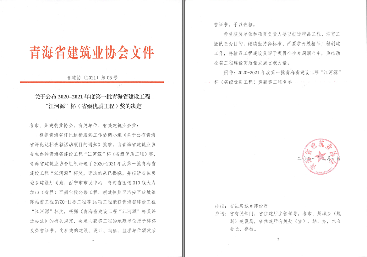 獲青海省建設工程最高獎項——